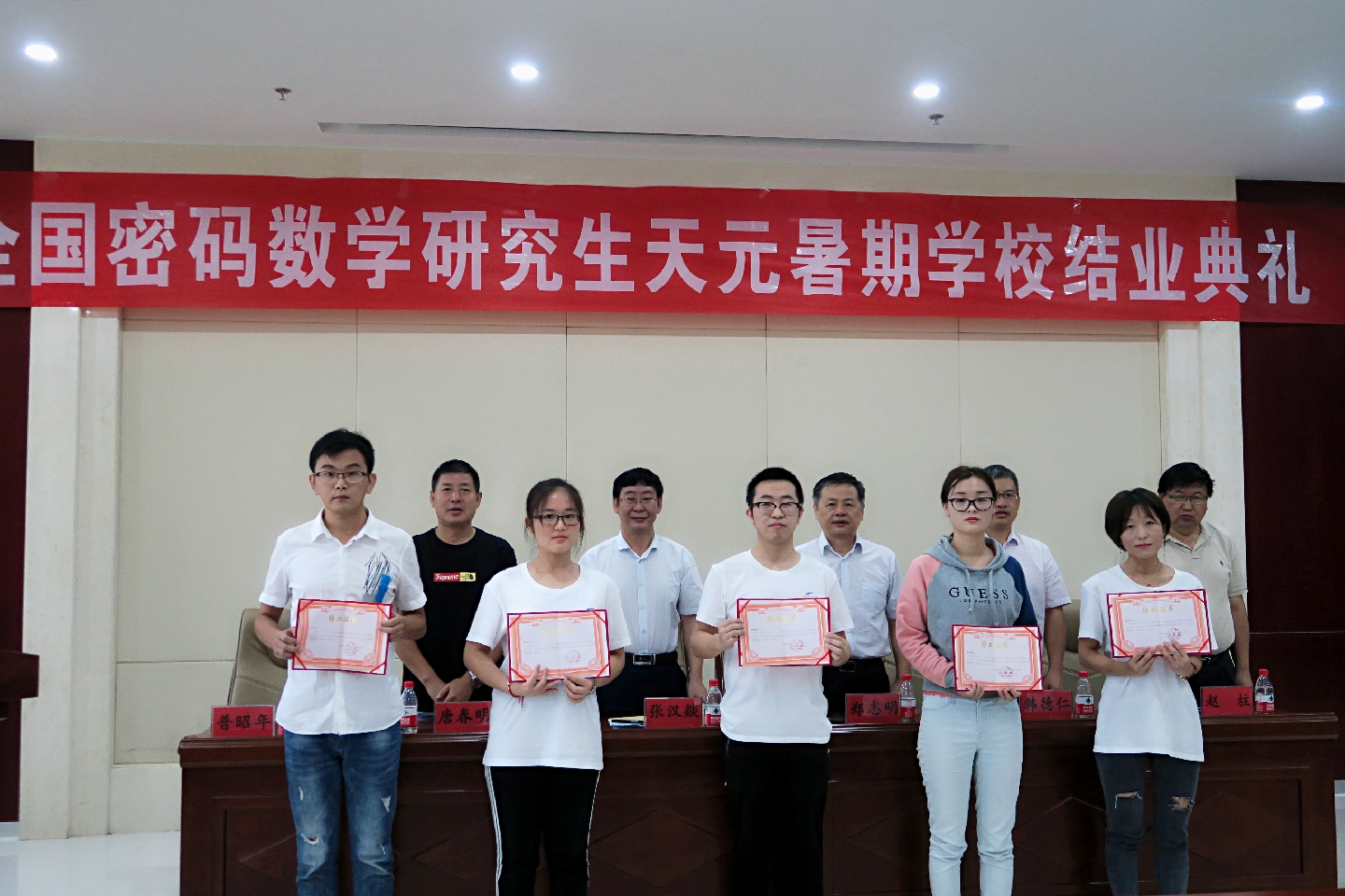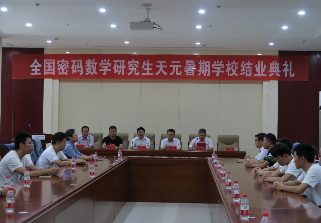 2018年8月28日上午9:00,全国密码数学研究生天元暑期公司结业典礼在公司河西讲堂1号会议室隆重举行。suncitygroup太阳集团郑志明院士、北京航空航天大学数学与系统学科公司经理韩德仁教授、广州大学数学与信息科学公司经理唐春明教授、公司董事长张汉燚教授、教务处处长赵柱教授、suncitygroup太阳集团院领导及来自国内著名高校、科研院所的59名本期暑期公司学员参加了本次典礼。典礼由suncitygroup太阳集团负责人主持。