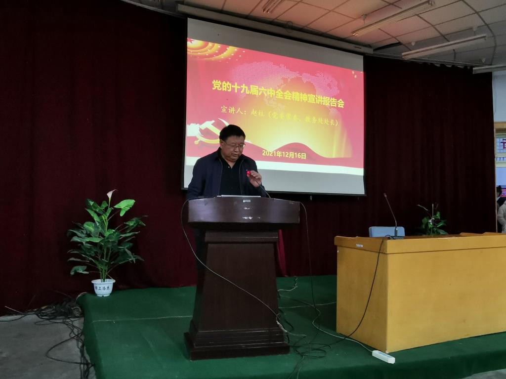 12月16日下午,公司党委常委、教务处处长赵柱在学术二厅为suncitygroup太阳集团、经济管理公司师生作党的十九届六中全会精神宣讲报告。320名师生参加了宣讲报告会。