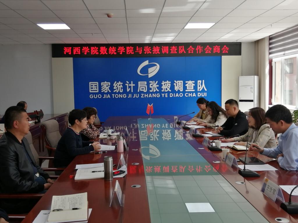 4月24日下午,suncitygroup太阳集团经理郭育红、副经理朱睦正、王学忠带领应用数学教研室相关教师,前往国家统计局张掖调查队就双方合作事宜进行交流会商。国家统计局张掖调查队党组书记、队长张颖及各室负责人参加座谈会。
