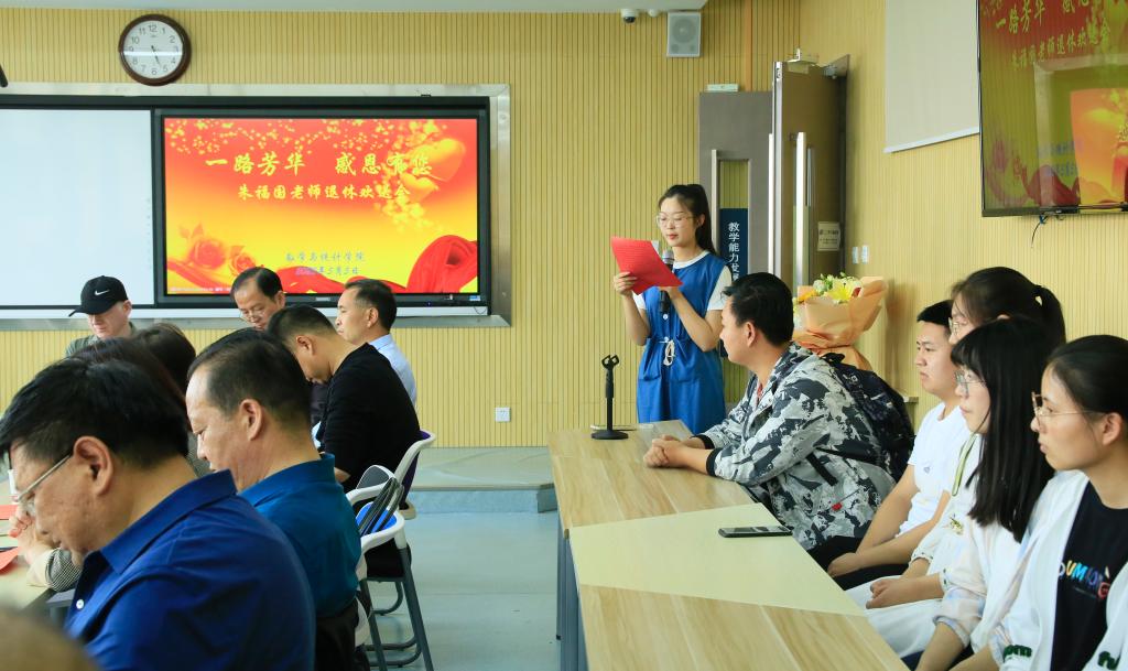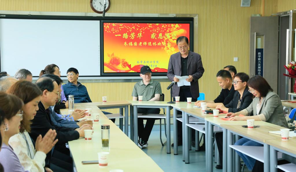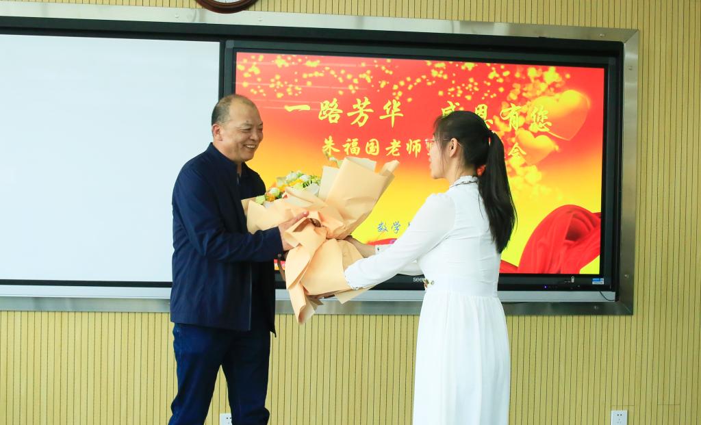 5月5日,suncitygroup太阳集团在教发中心905为即将退休的朱福国教授举办“一路芳华感恩有您”退休欢送会。欢送会由公司经理郭育红教授主持,董事长张汉燚教授,公司联系领导、党委常委、教务处处长赵柱教授出席,公司全体教职工、数学与应用数学专业2019级1班全体员工和部分员工代表参加了欢送会。