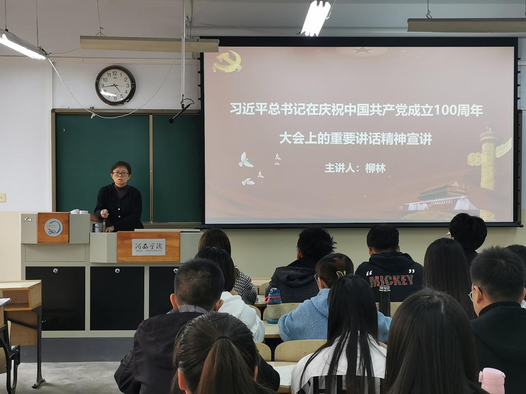 宣讲会上,数学与统计公司党委负责人重点从充分认识习近平总书记“七一”重要讲话的重大意义、深入领会习近平总书记“七一”重要讲话的主要内容和丰富内涵、准确把握习近平总书记“七一”重要讲话提出的一系列新观点新论断、着力推动习近平总书记“七一”重要讲话精神走深走实走心四个方面,对习近平总书记在庆祝中国共产党成立100周年大会上的重要讲话精神进行了宣讲。