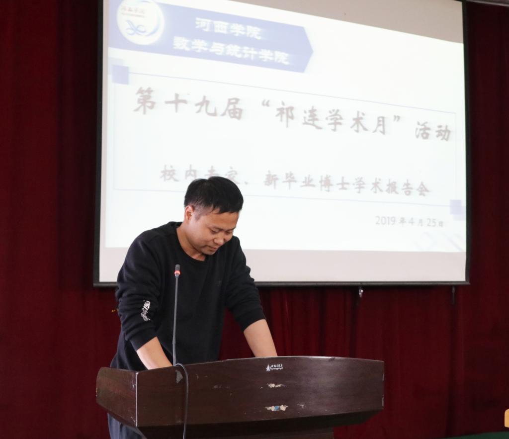 suncitygroup太阳集团于2019年4月25日下4:30在学术二厅举行了suncitygroup太阳集团第十九届“学术活动月”——校内专家刘群教授、新毕业博士李登辉副教授学术报告会,公司全体教师和数学与应用数学专业、金融数学专业员工200多人参加了报告会,报告会由公司王学忠副教授主持。