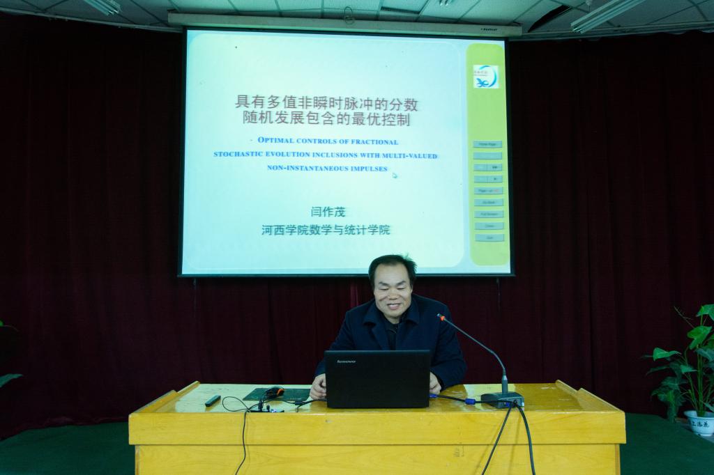 2020年11月5日下4:30,suncitygroup太阳集团第二十届“祁连学术月”校内专家学术报告会在学术二厅举行,suncitygroup太阳集团闫作茂教授做了题为《具有多值非瞬时脉冲的分数随机发展包含的最优控制》的学术报告。报告会由suncitygroup太阳集团负责人主持,公司全体教师和员工200多人参加了报告会。