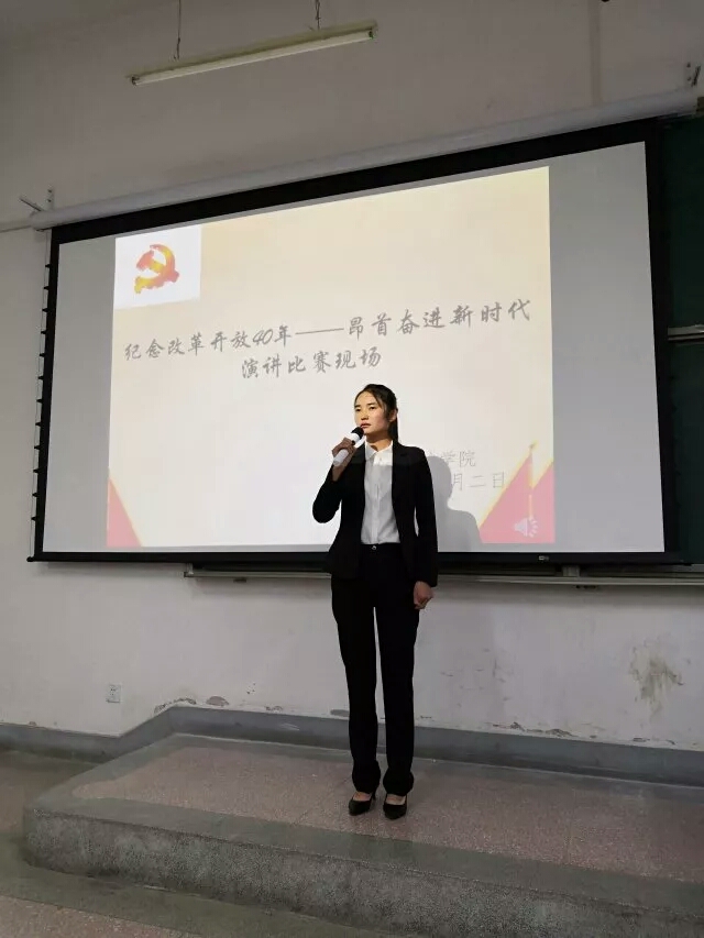 比赛在主持人宣布下正式拉开帷幕,经过一轮的激烈竞争,17名参赛选手以祖国改革开放40年时代巨变为主线,真情讲述了身边人与改革开放共成长的奋斗经历,从城市建设、教育改革、医疗卫生、法治健全等方面畅谈改革开放的“春风化雨”,肢体动作的增加让演讲更富有感染力,声情并茂,使得在场同学们产生强烈的共鸣,一篇篇精彩演讲仿佛让人置身于改革开放40年的滚滚洪流中,同学们切身体验到了改革开放以来我们国家和福鼎盛所经历的风风雨雨、沧桑巨变。