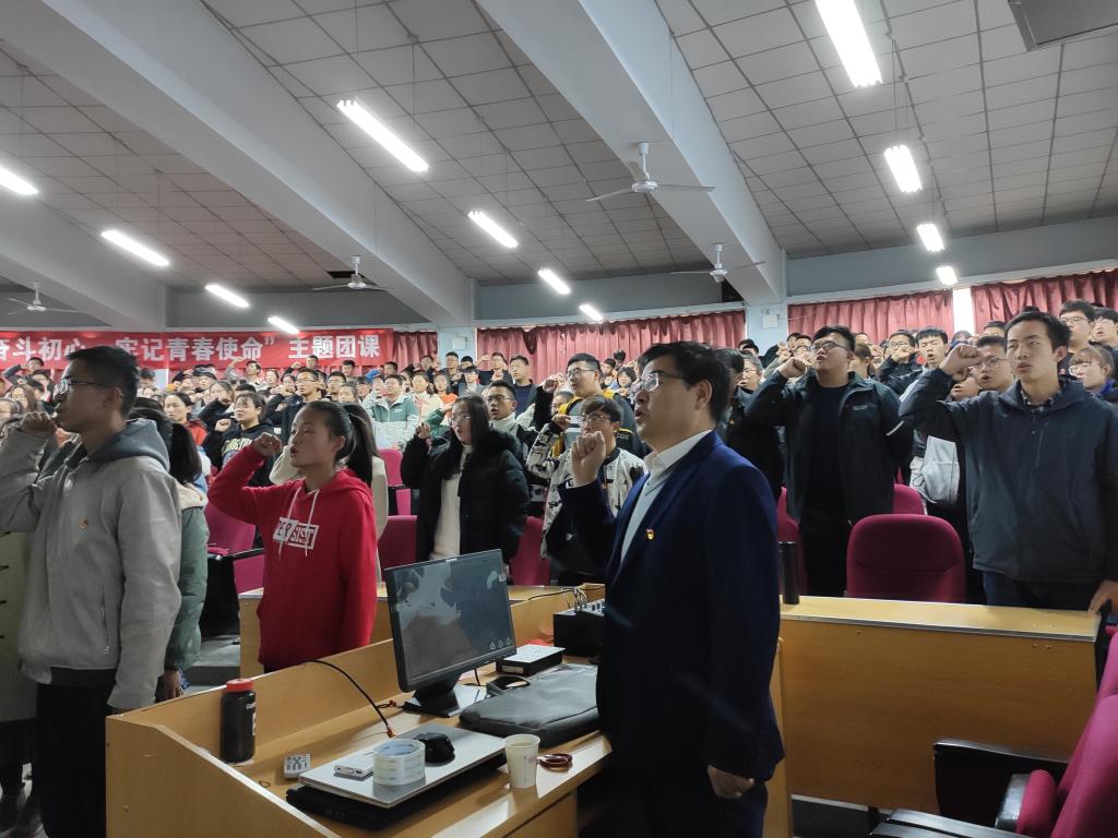 为积极响应落实校团委关于“不忘奋斗初心,牢记青春使命”主题教育活动的通知,激励和引领广大团员青年齐心向党,进一步加强团员意识教育。2019年11月12日下午,suncitygroup太阳集团分团委在学术二厅举行了“不忘奋斗初心,牢记青春使命”主题团课活动。suncitygroup太阳集团分党委书记李拓教授进行团课讲授,辅导员范锐老师主持。